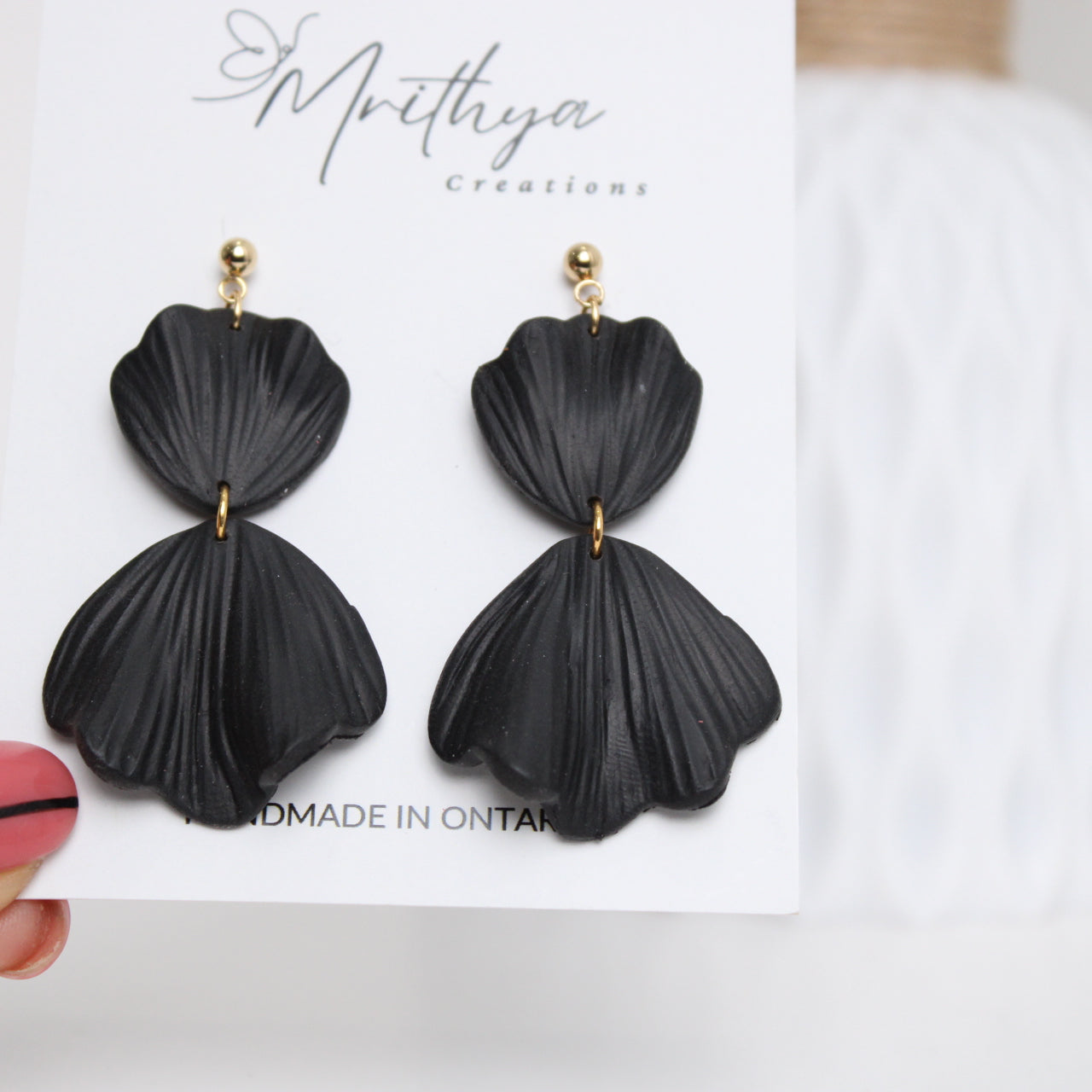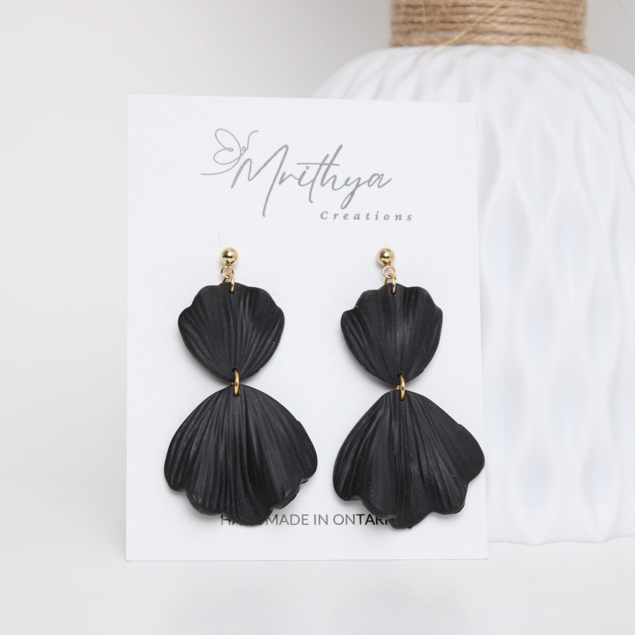Sophisticated black Naomi earrings with a sleek, modern design, offering a timeless and versatile elegance to any outfit with a comfortable, lightweight wear.