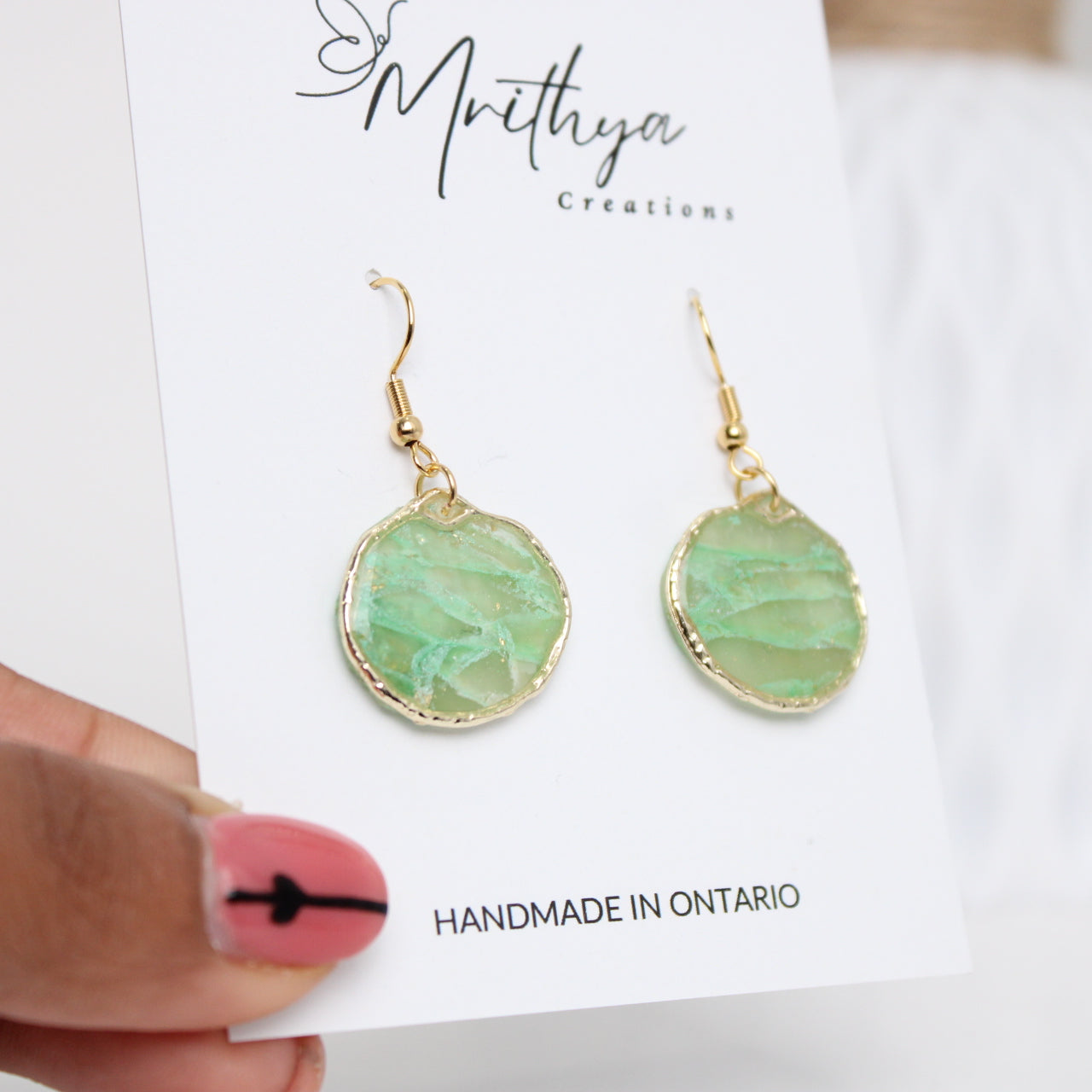 Stunning Jade earrings with a oval drop shape and marbled texture, adding a striking yet elegant flair to any outfit with a comfortable, lightweight wear.