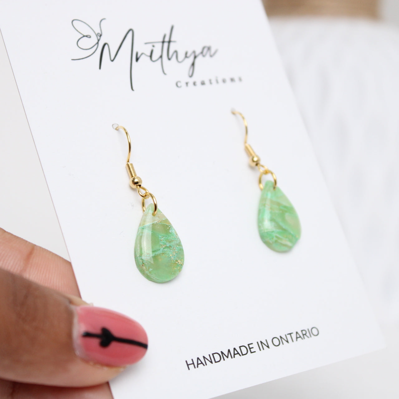 Elegant jade tear drop for a sophisticated and comfortable look.